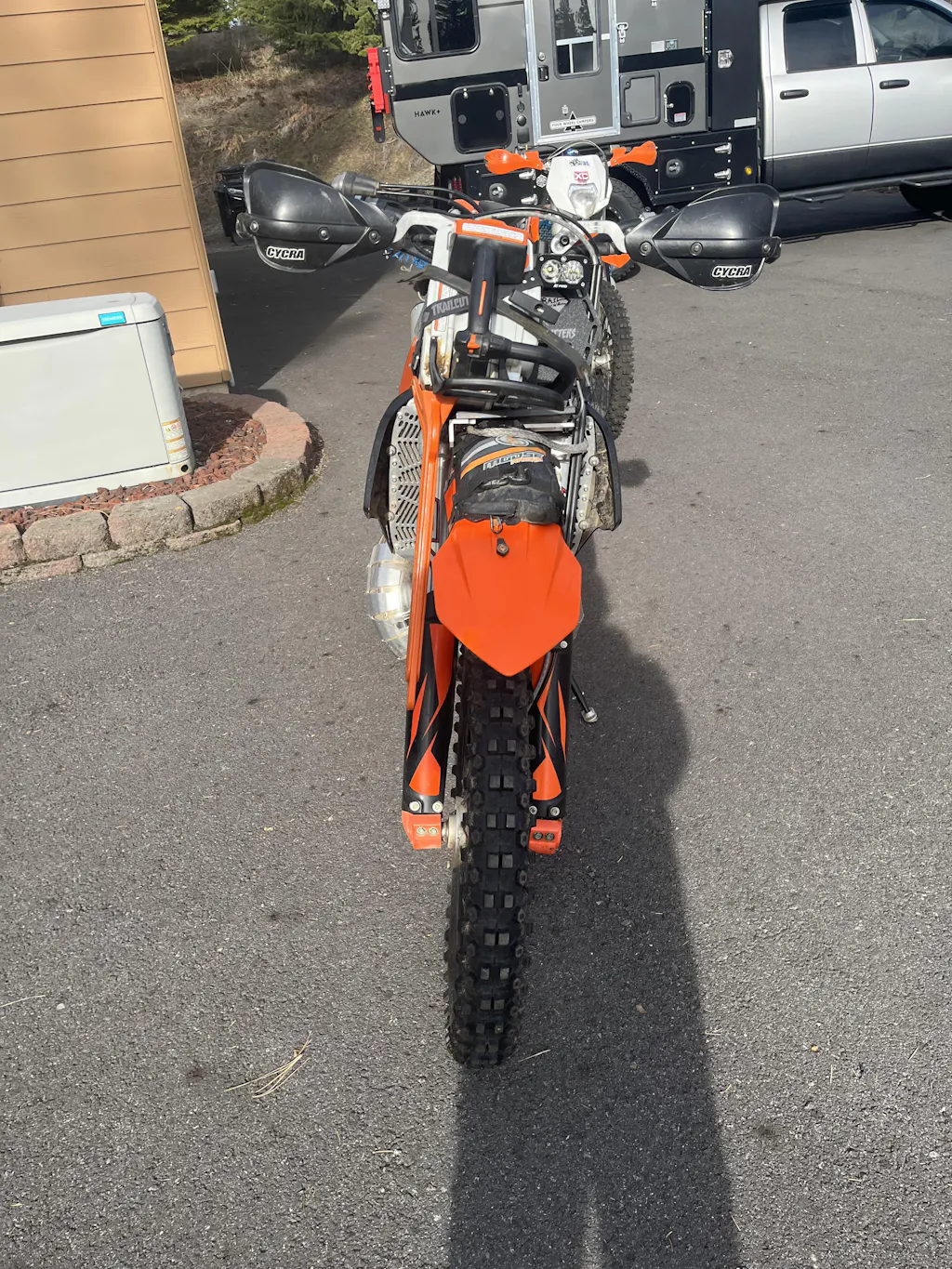 —"Most bikes": Fits KTM TPI, KTM carb, Sherco, Yamaha ect this rack sits the closest to the forks