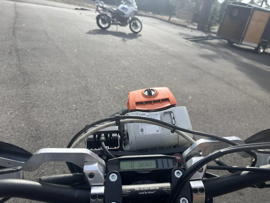 If you're new to the Trailcutters crew you might be wondering what saw is the best to run. Typically, we run top handle chainsaws saws which are small and lightweight arborist climbing saws. The typical saw you probably have in the garage is a backhanded saw. These are heavy and the long handle sticks out above the bike's handlebar. Our rack will work with these saws (using the XL kit upgrade) but they are generally only needed for really big tree cutting days. The most common trailcutters saw is the stihl MS192t or 193t which is pretty light and has enough power for big cuts. However, the new Echo 2511t is gaining popularity as it is the lightest saw available, you just have to be more patient when cutting larger trees as it has a smaller engine.